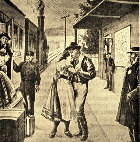Na obr. kresba „Loučení na nádraží přerovském“ z časopisu Amerikán – národní kalendář
